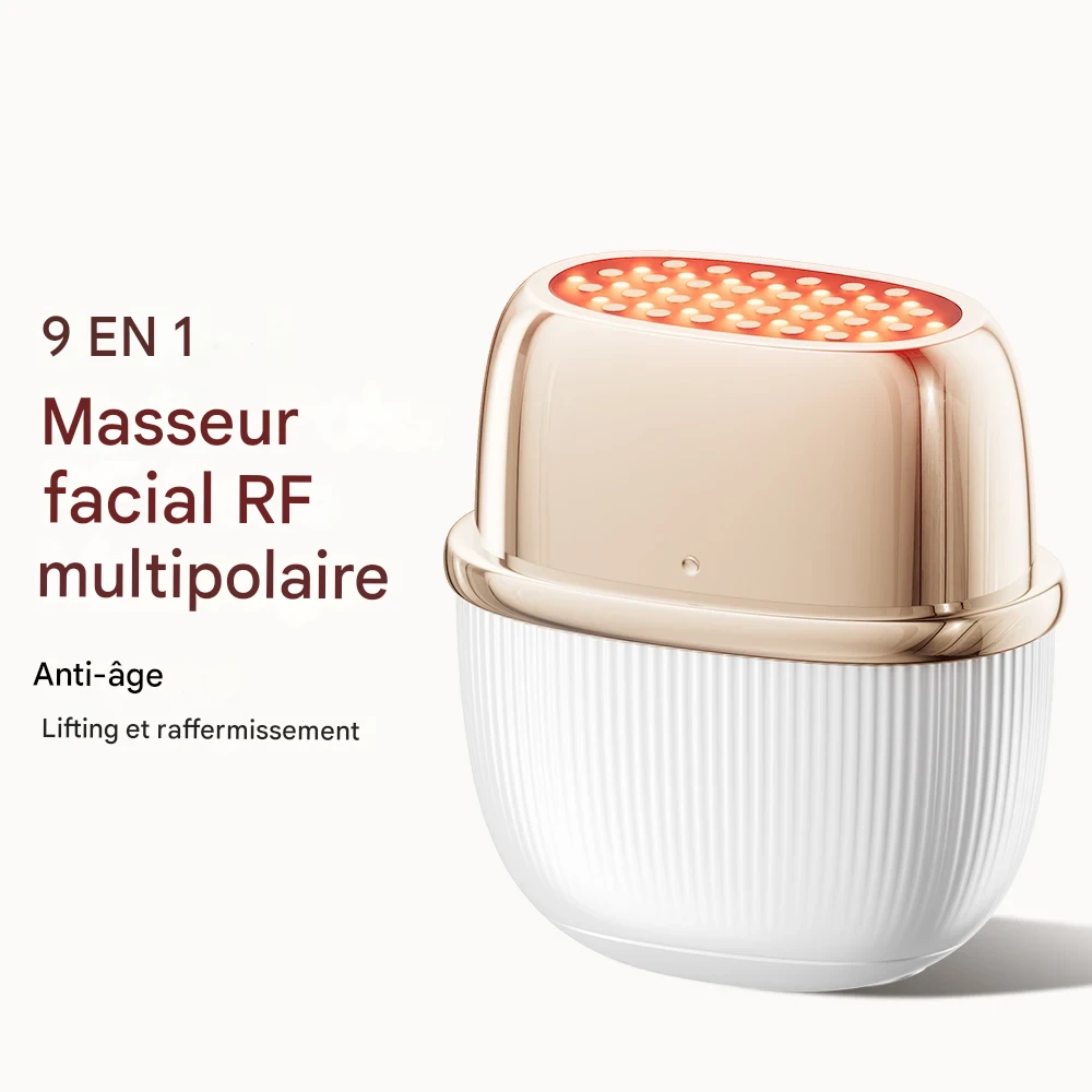 Découvrez un appareil de soin du visage innovant qui combine technologie multipolaire RF et stimulation EMS pour un lifting naturel et un raffermissement de la peau. Il cible efficacement les signes du vieillissement, réduisant les rides et améliorant l’élasticité cutanée grâce à une stimulation en profondeur. Ce dispositif intègre également une thérapie par lumière tricolore pour revitaliser et équilibrer votre teint. L’utilisation régulière de cet appareil favorise la régénération cellulaire et procure un massage facial apaisant, idéal pour une routine de soins complète. Sa finition en or 24 carats apporte une touche de luxe tout en optimisant la conductivité pour des résultats visibles. Compact et ergonomique, il s’intègre facilement dans votre quotidien pour révéler une peau plus ferme, lumineuse et éclatante de jeunesse.