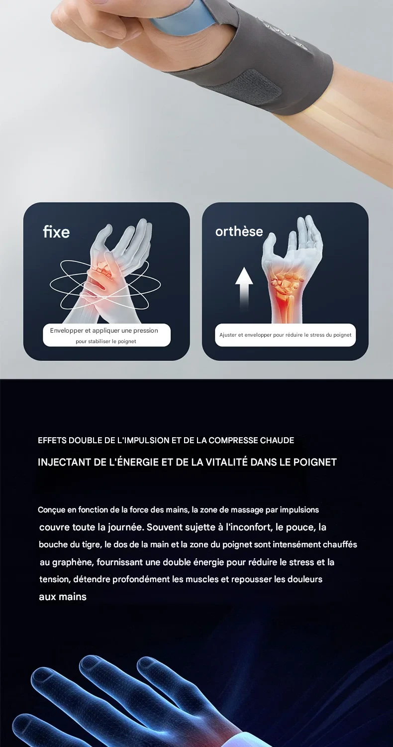 Ce bracelet chauffant pour poignet est conçu pour soulager efficacement les douleurs liées à la tendinite, aux entorses et aux tensions du TFCC. Il offre une chaleur apaisante qui favorise la circulation sanguine et accélère la récupération musculaire. Idéal pour les sportifs ou toute personne souffrant d’inconfort au poignet, il aide à prévenir les blessures et les fatigues musculaires grâce à son soutien ergonomique. Facile à porter tout au long de la journée, ce dispositif allie confort et efficacité pour améliorer votre bien-être quotidien.