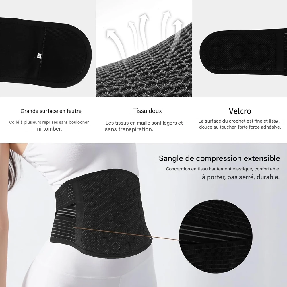 Ceinture lombaire auto-chauffante avec aimants intégrés, offrant un soutien efficace et un soulagement ciblé des douleurs dorsales. Disponible en plusieurs tailles et couleurs.