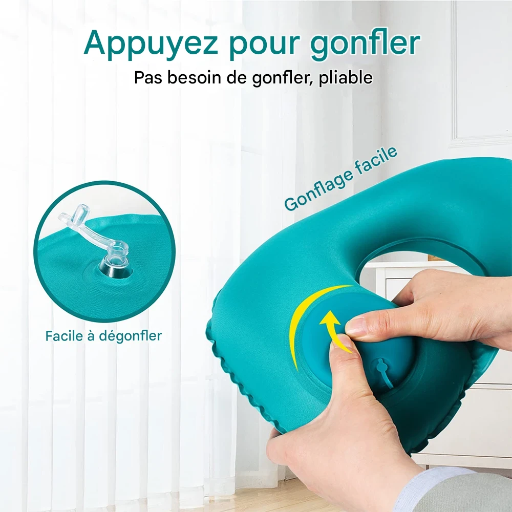Coussin de voyage ergonomique gonflable en U, léger et compact