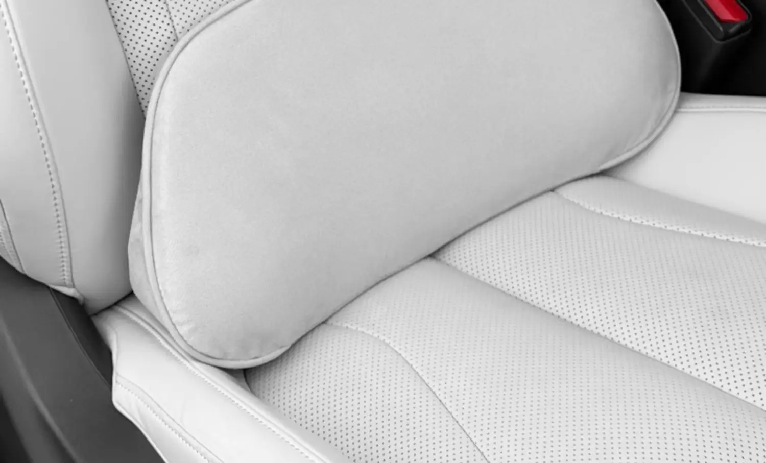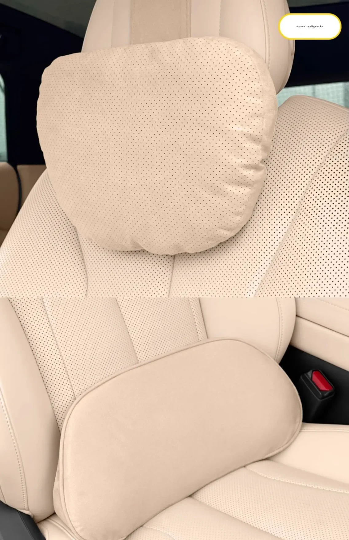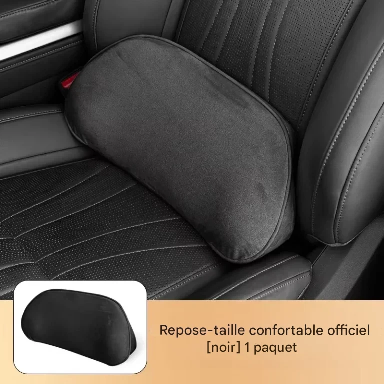 Coussin de siège ergonomique avec appui-tête et soutien lombaire en mousse à mémoire de forme, conçu pour améliorer le confort et la posture en voiture.