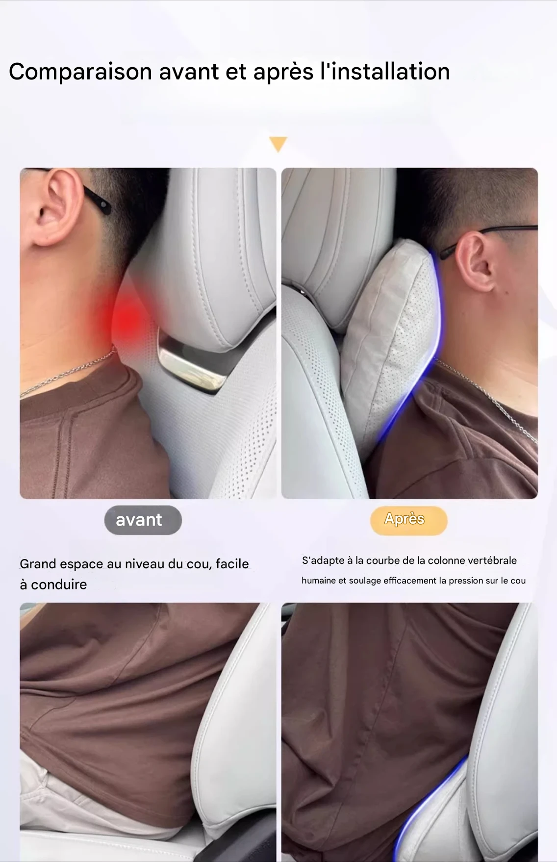 Améliorez votre confort de conduite avec ce set de coussins ergonomiques spécialement conçu pour les modèles G6, G9, X9 et P7. Composé d’un appui-tête, d’un coussin cervical et d’un soutien lombaire en mousse à mémoire de forme, cet ensemble offre un maintien optimal pour réduire la fatigue et prévenir les douleurs liées à une mauvaise posture. Adapté à l’intérieur de votre voiture, il s’intègre parfaitement grâce à ses coloris variés tels que marron, gris foncé, noir, gris clair, café et beige. Faciles à installer, ces accessoires améliorent votre bien-être lors de chaque trajet en apportant un soutien ciblé et durable. Profitez d’un confort optimal et d’un soutien personnalisé pour vos déplacements quotidiens ou vos longs voyages.