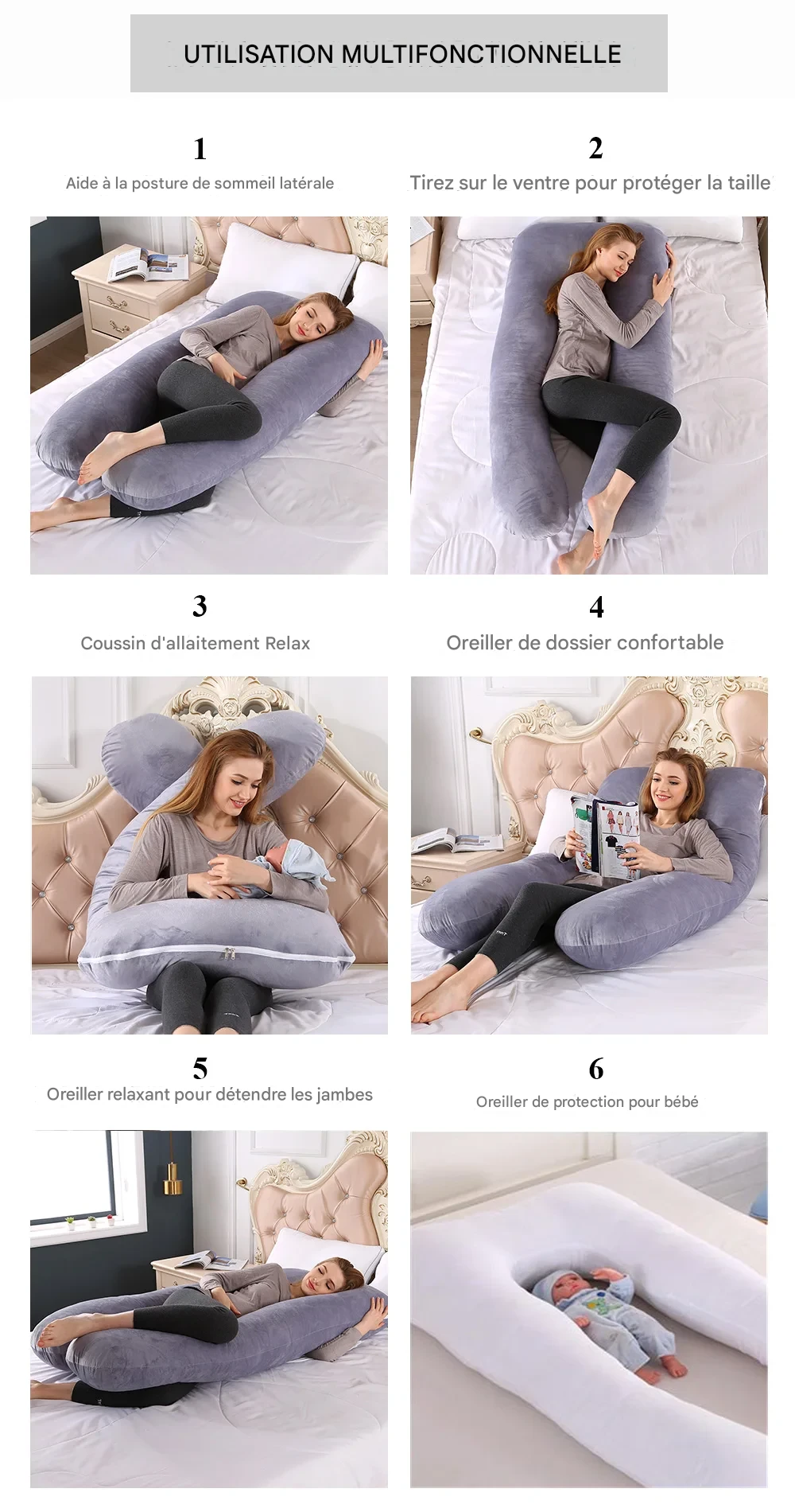 Coussin grossesse et allaitement ergonomique 130 x70 cm confort optimal