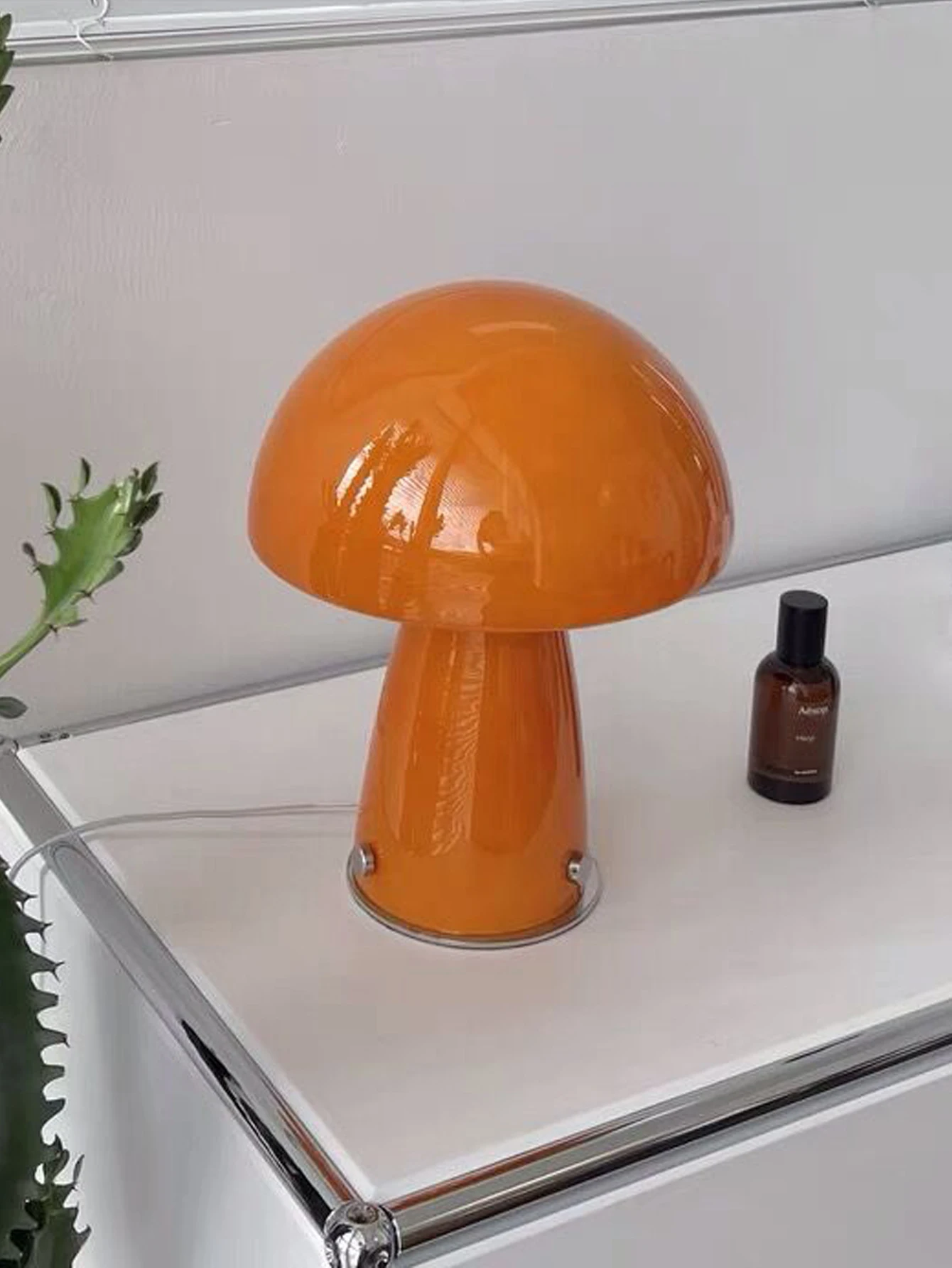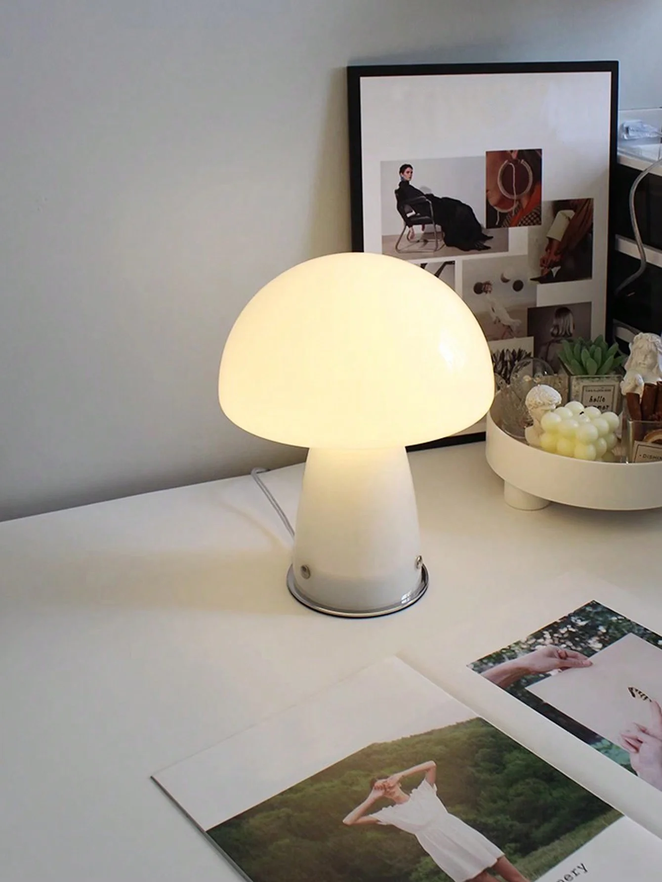 Lampe champignon LED moderne à cordon USB offrant un éclairage d’ambiance tricolore blanc et orange idéale pour le camping, la salle à manger ou la décoration de chevet.