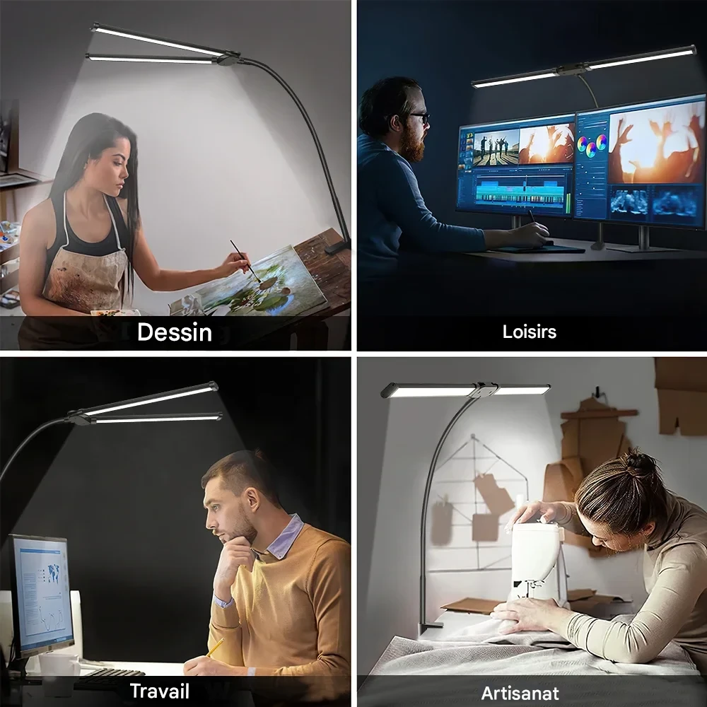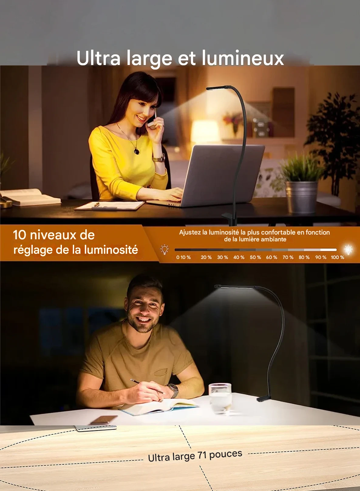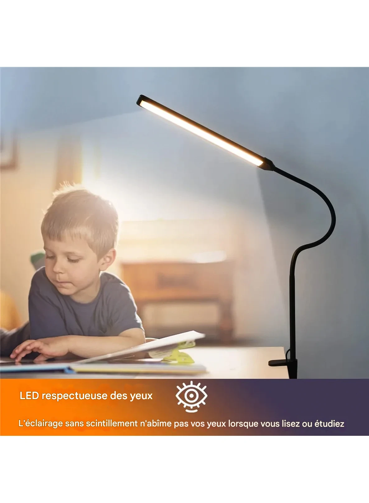 Lampe de bureau LED à clip, bras articulé et lumière anti-fatigue