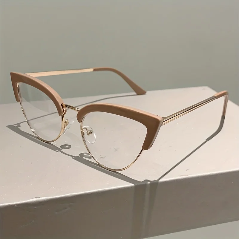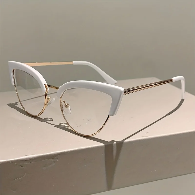 Lunettes rétro à monture œil de chat avec verres transparents filtrant la lumière bleue, idéales pour protéger les yeux lors de l’utilisation d’écrans.