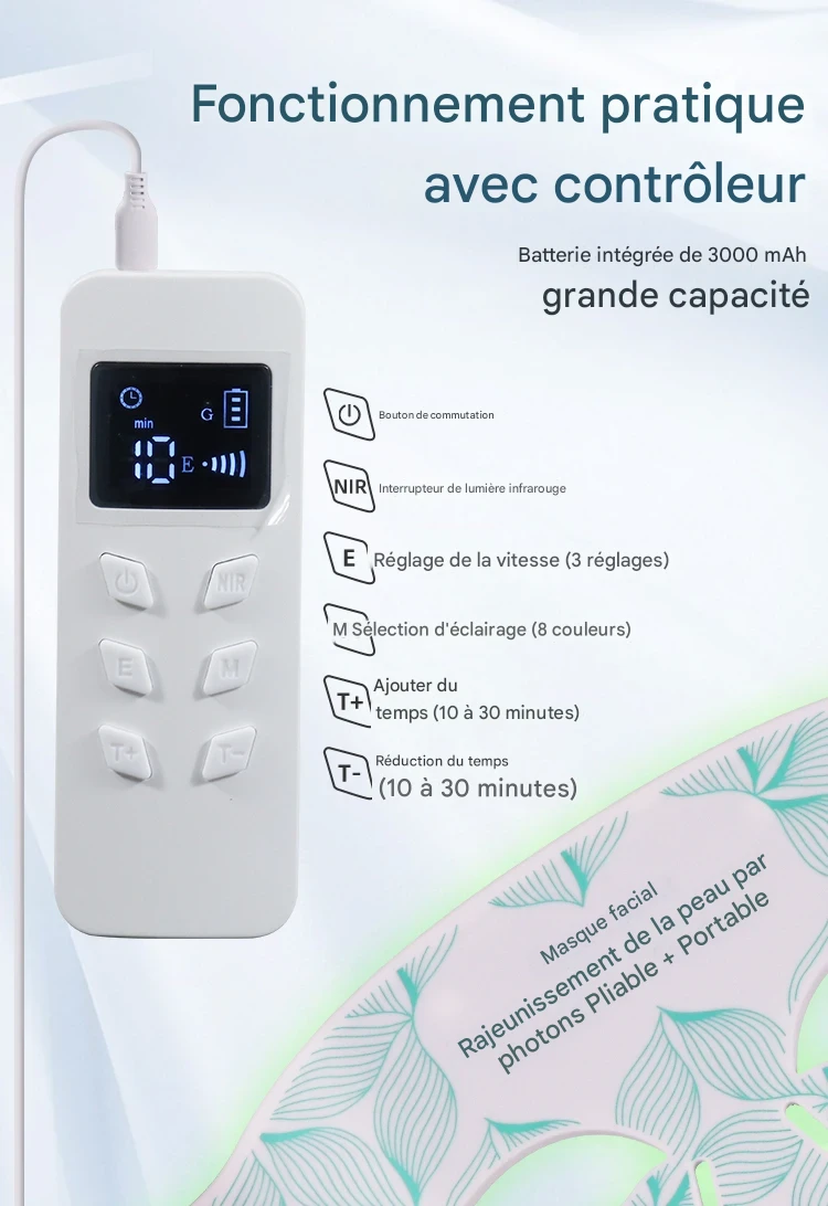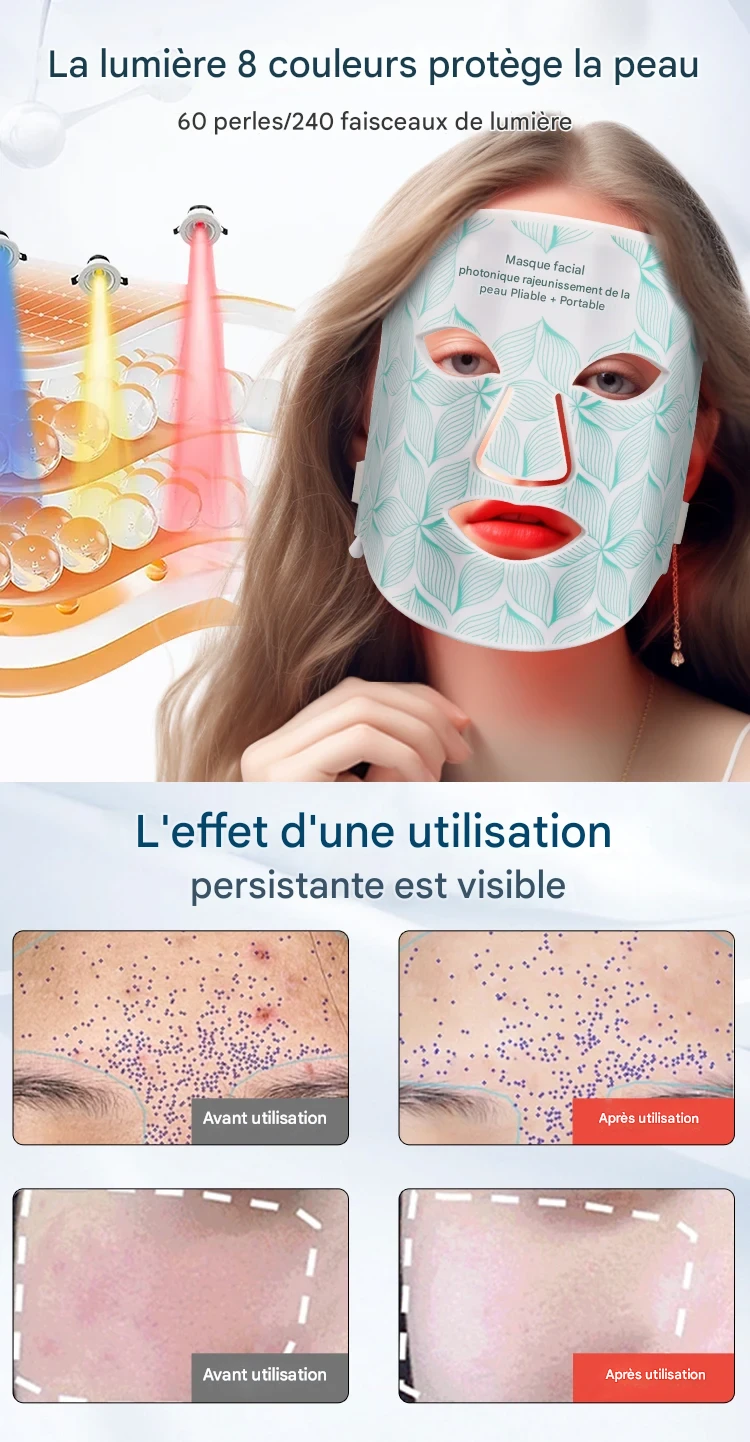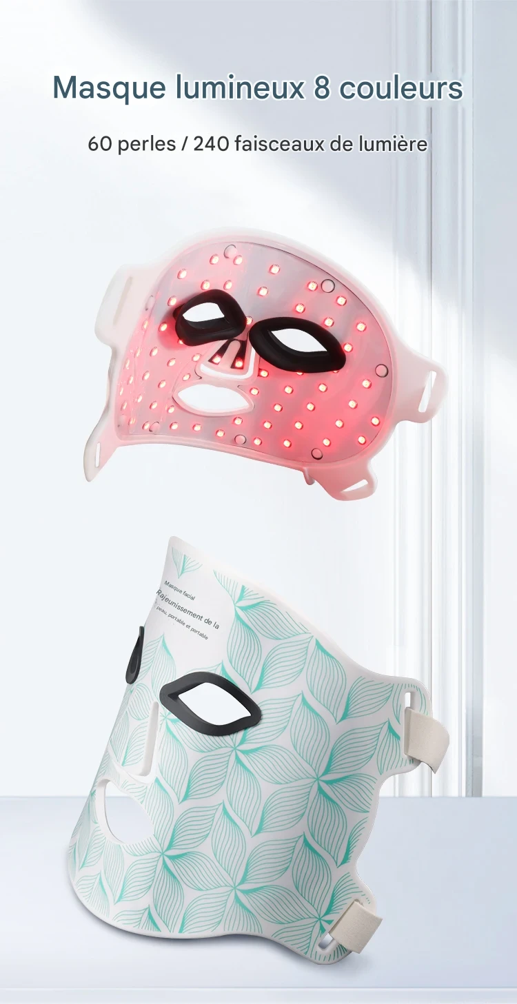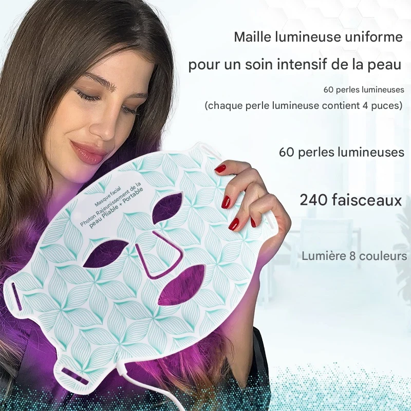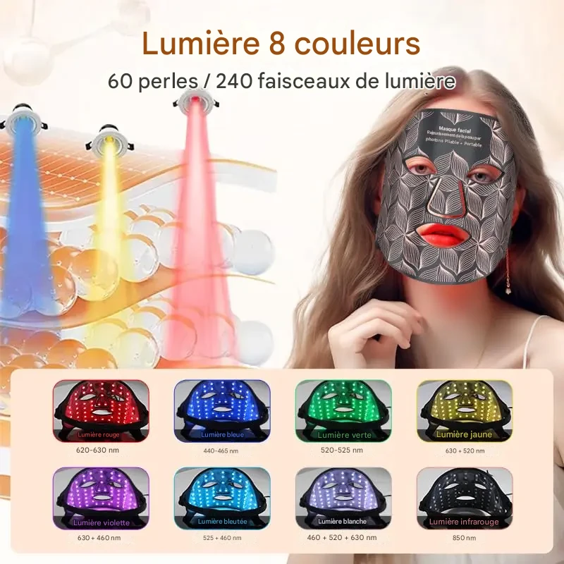 Masque LED 8 Couleurs Anti-Âge avec Lumière Infrarouge pour Peau Lisse