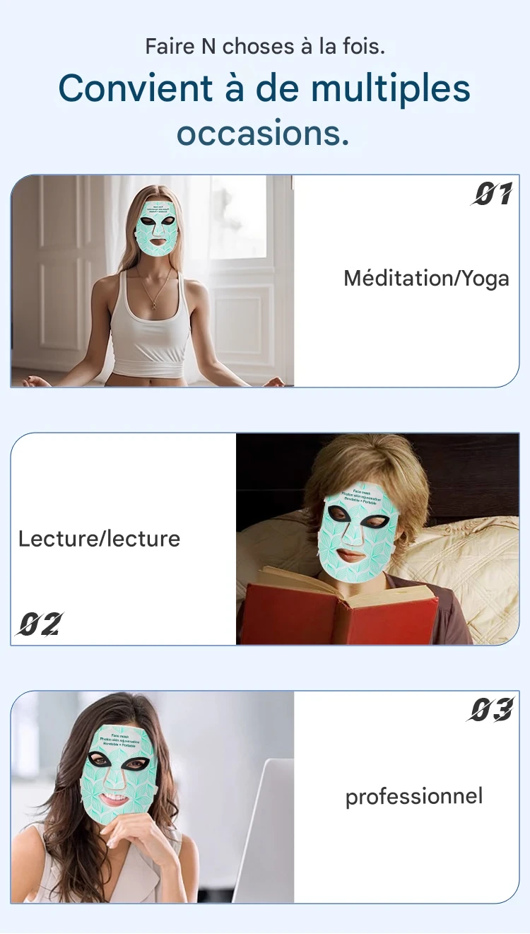 Ce masque facial LED combine huit couleurs de lumière, incluant le rouge et le proche infrarouge, pour offrir une thérapie complète destinée à rajeunir la peau, réduire les signes de l’âge et améliorer l’éclat naturel du visage. Il intègre également une lumière ciblée pour le cou, favorisant le raffermissement et l’amélioration de la texture cutanée dans cette zone sensible. Facile à utiliser, ce masque permet un soin professionnel à domicile, stimulant la production de collagène et aidant à uniformiser le teint tout en réduisant les rides et les imperfections. Grâce à ses différentes options de couleur, il peut être adapté selon les besoins spécifiques de votre peau, offrant ainsi un traitement personnalisé pour un confort optimal et des résultats visibles.