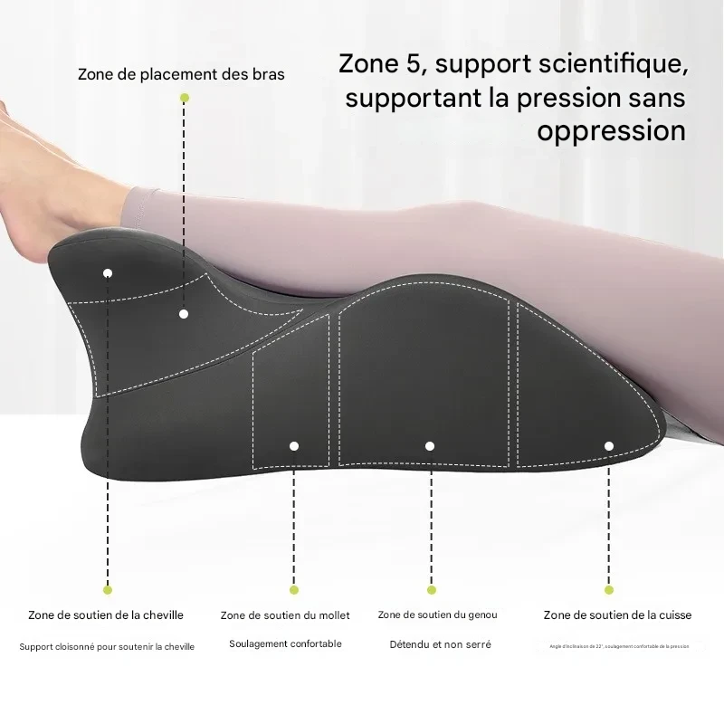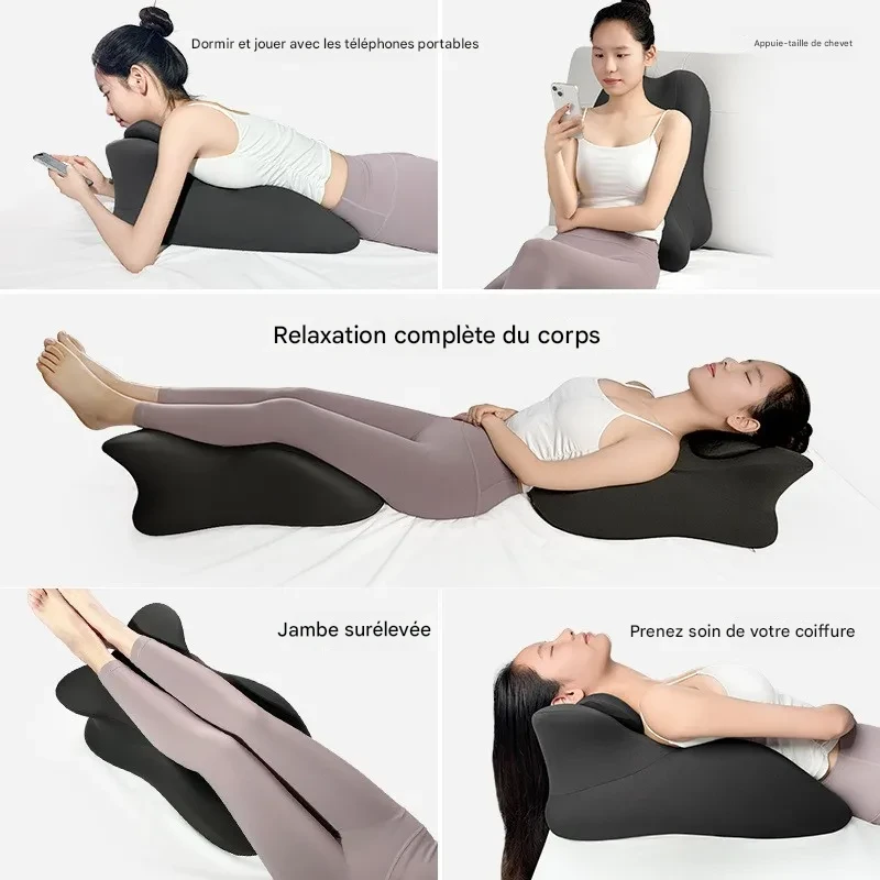 Oreiller en mousse à mémoire de forme offrant un soutien ergonomique pour le cou et les jambes, idéal pour dormir, lire ou utiliser un téléphone en position allongée.