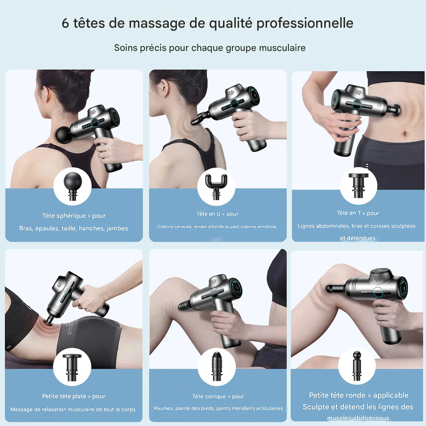Pistolet de massage puissant 6 têtes pour détente musculaire rapide