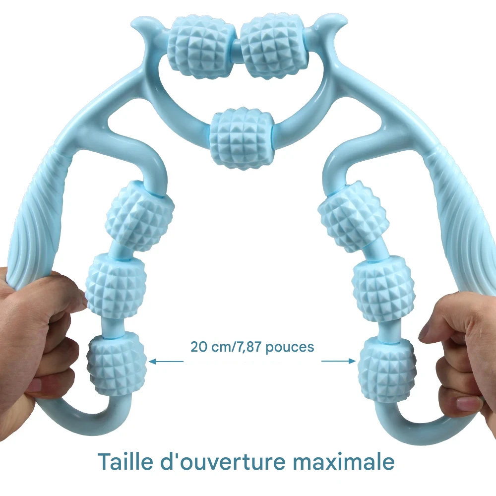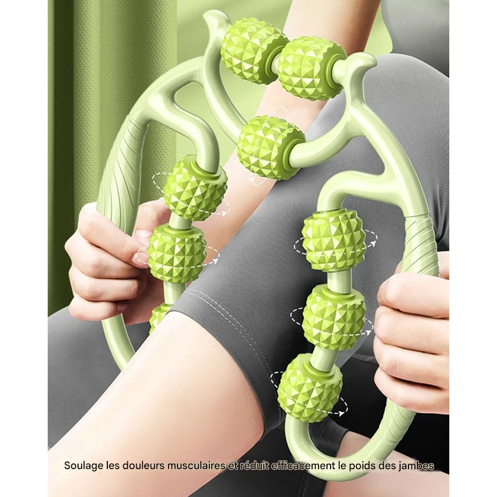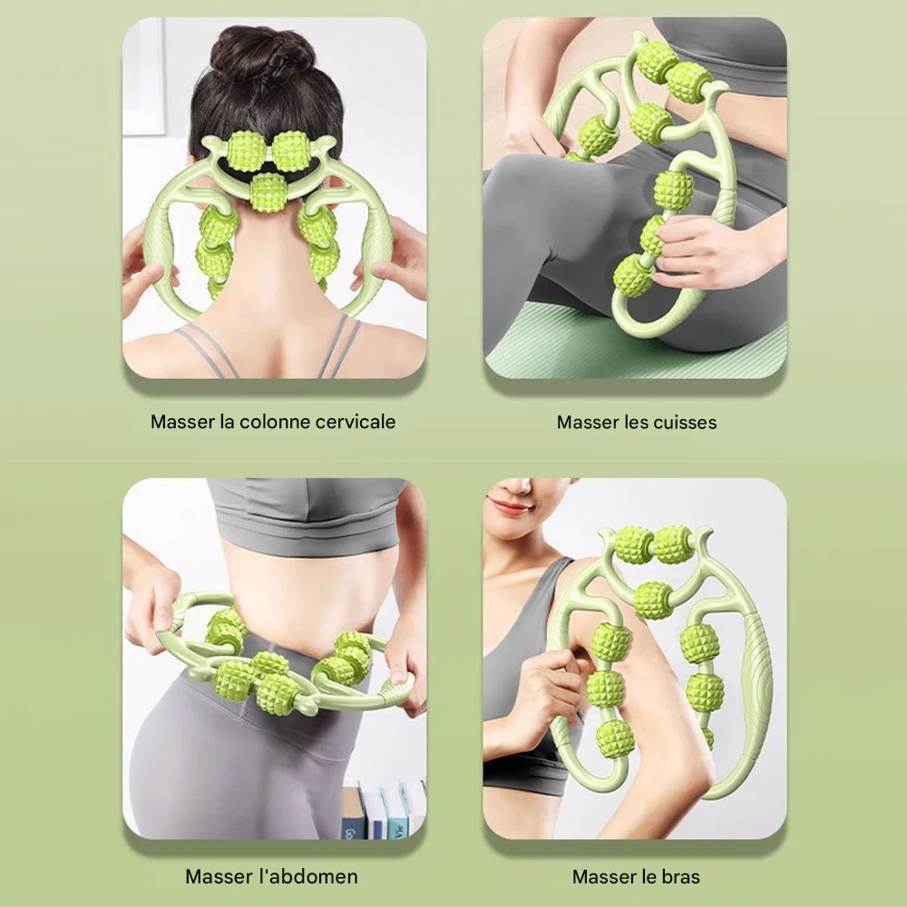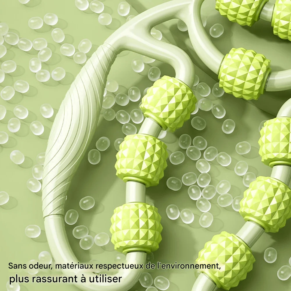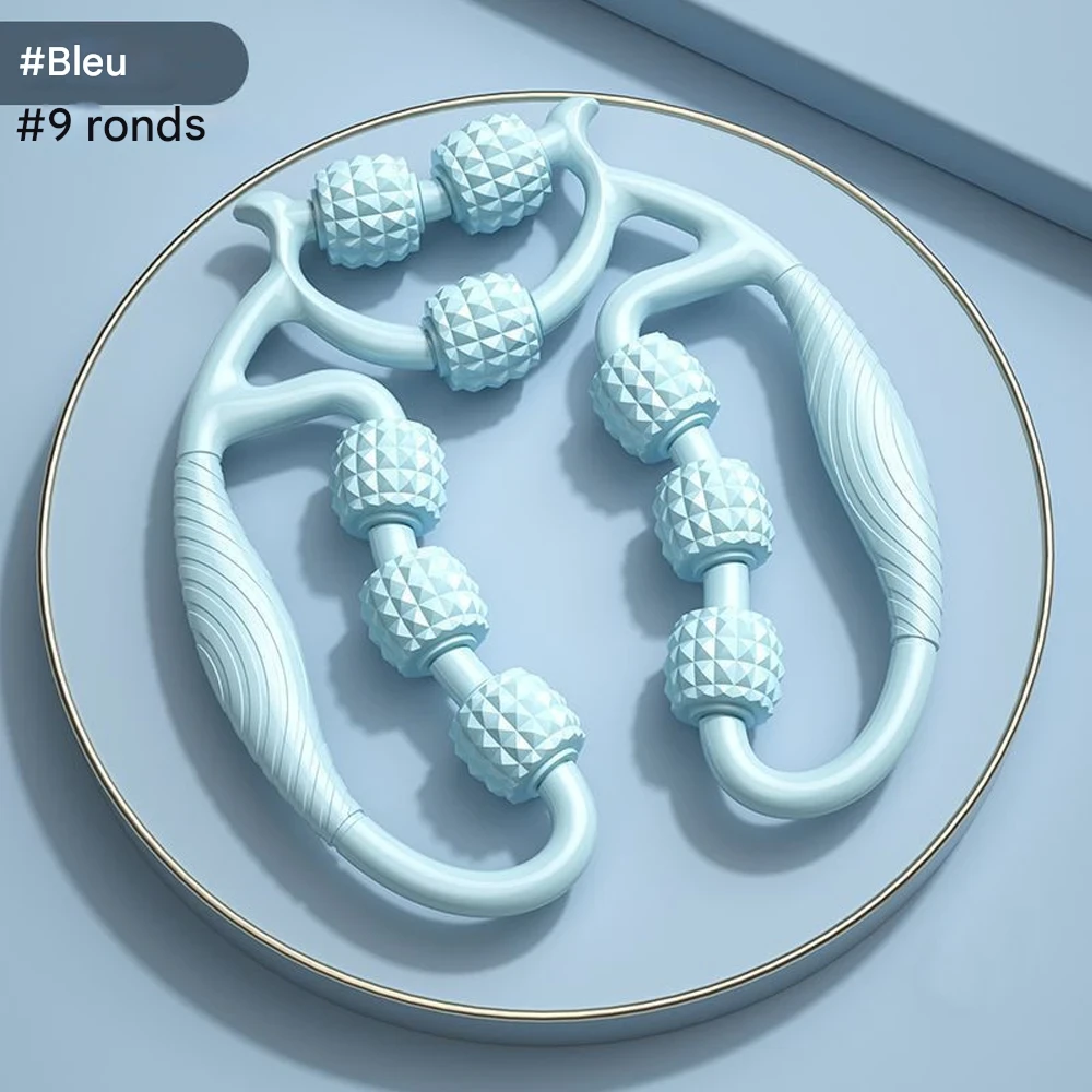 Rouleau de massage manuel conçu pour soulager les tensions musculaires profondes et stimuler la récupération sur le cou, les cuisses, les mollets et les jambes.