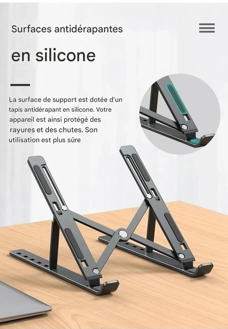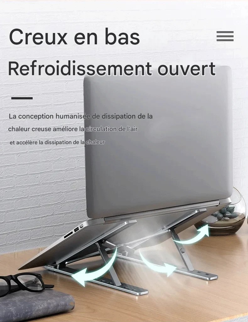 Support Ordinateur Portable Pliable – Aluminium Ajustable & Ergonomique