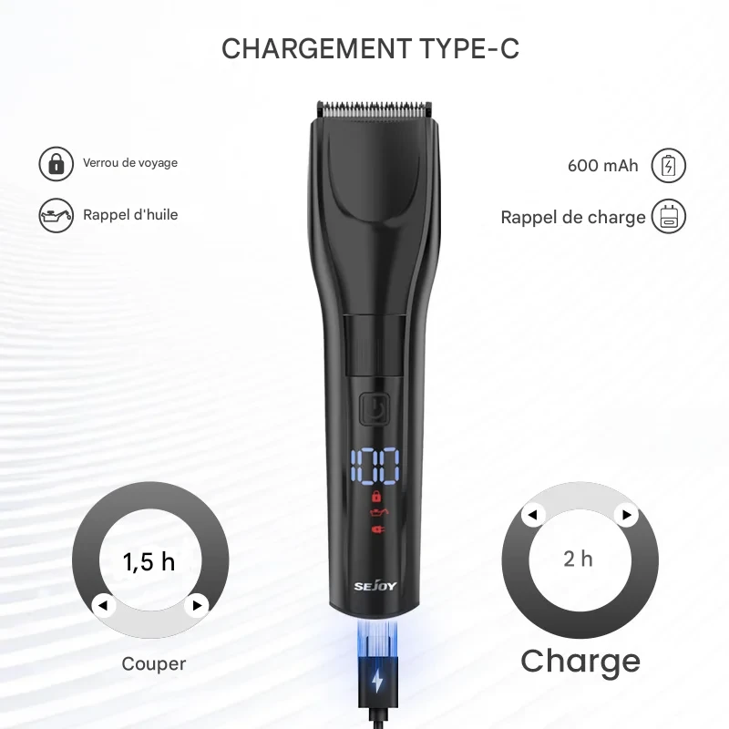 Tondeuse électrique rechargeable pro pour coupe précise et ajustable